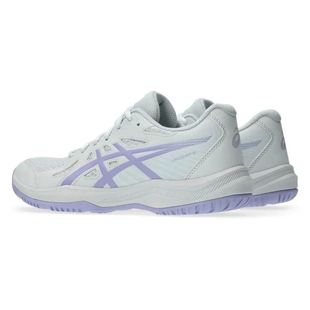 1072A107.405 Entrena con comodidad y estilo con los ASICS W Upcourt 6 Azul con Morado, tenis deportivos para mujer con amortiguación GEL®, ligereza y estabilidad en cada paso.