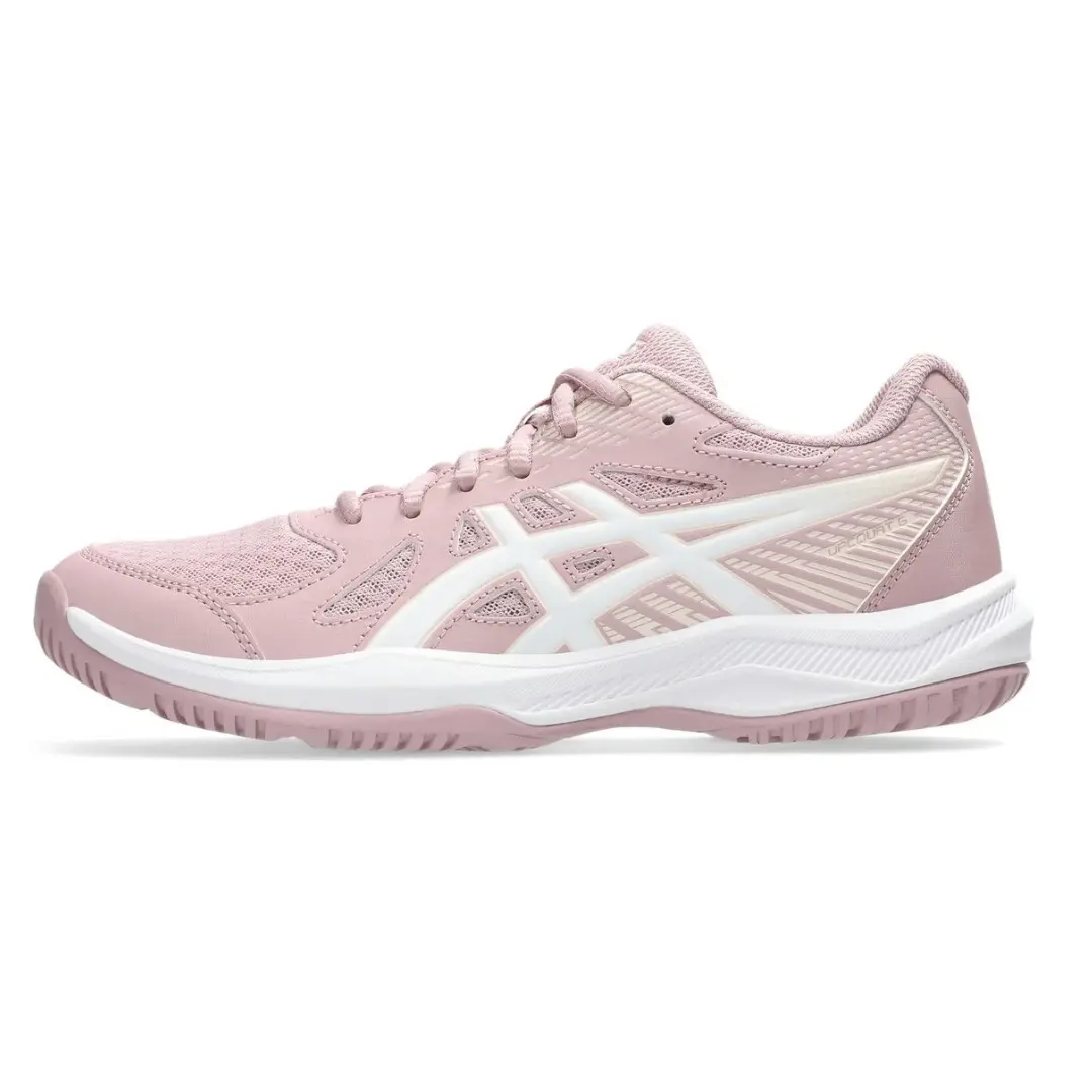 1072A107.703 Entrena con comodidad y estilo con los ASICS W Upcourt 6 Rosado con Blanco, tenis deportivos para mujer diseñados para absorber impactos y ofrecer estabilidad en cada paso.