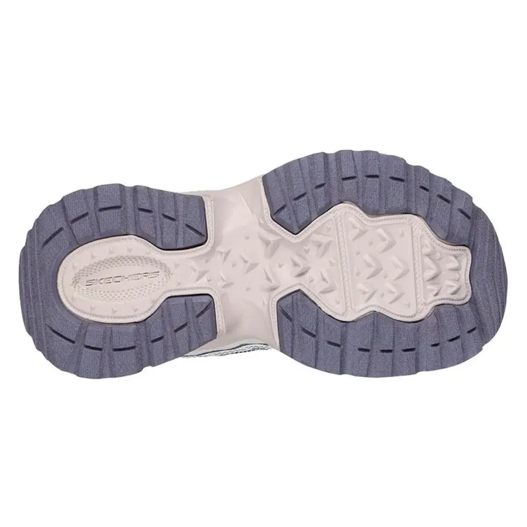 180239WPR Los tenis Skechers Vigor AT blanco con lila para mujer ofrecen Memory Foam que se adapta al pie, brindando suavidad y soporte todo el día.